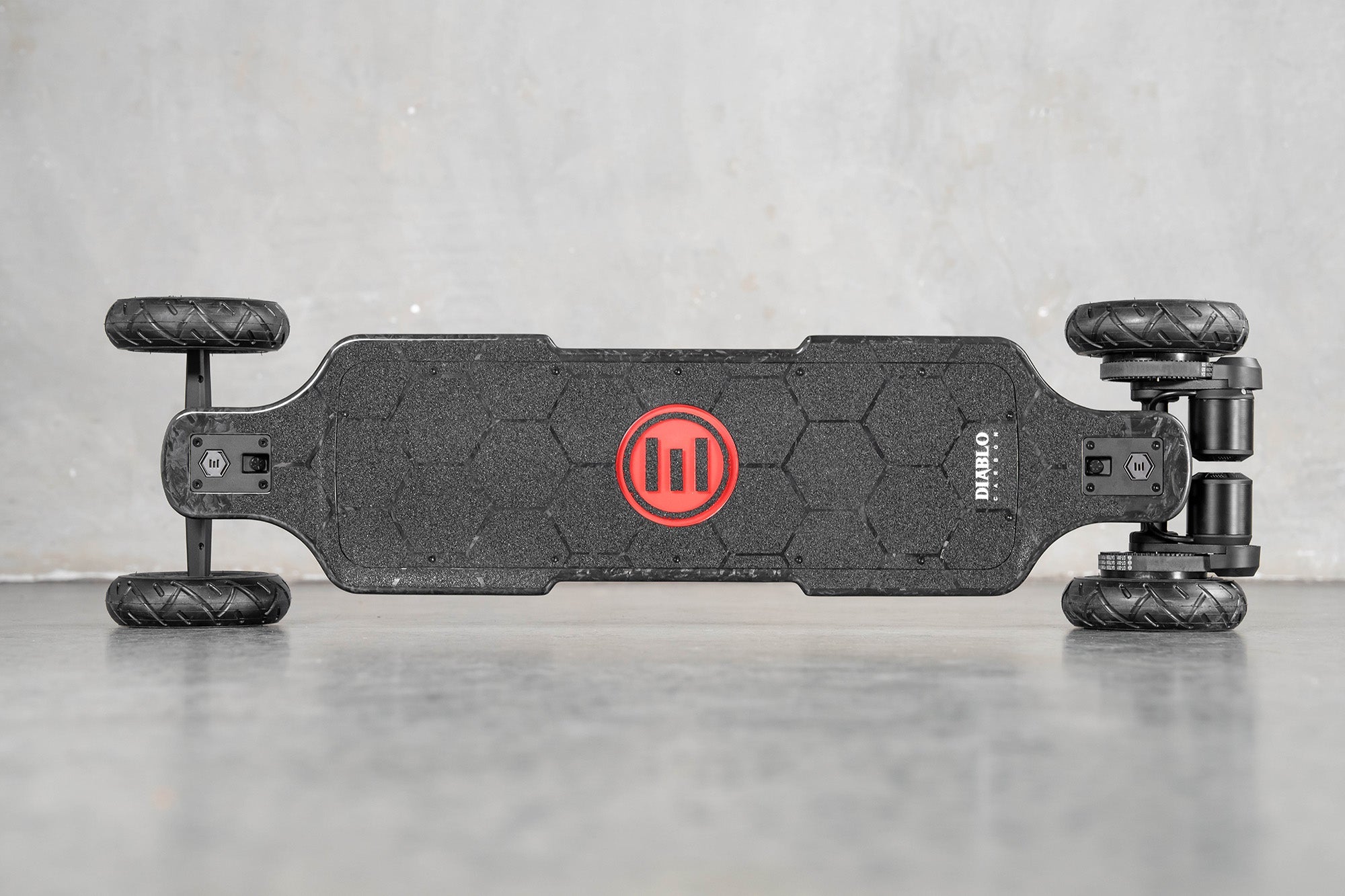 Engineered to reach speeds up to 50 km/h and boasting a range of 50 km, this electric skateboard is built to handle diverse terrains effortlessly. Its forged carbon fiber deck ensures robustness and agility, providing a stable yet dynamic riding experience for adventurers seeking new thrills in any terrain. Equipped with Evolve's Super Carve 2 Trucks, the Diablo Carbon All-terrain offers enhanced stability and precise carving capabilities, delivering a ride that replicates the endless surf wave, or limitless snowboard run.